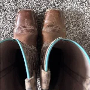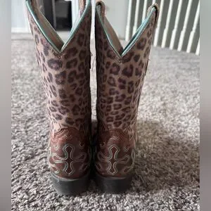 Ariat girls boots, Size 1 Leopard Print and Brown Cowgirl Boots square toe