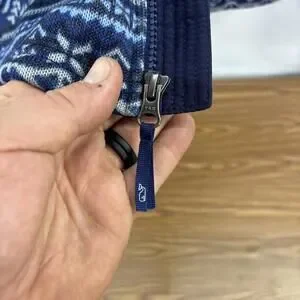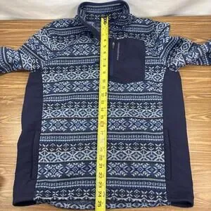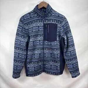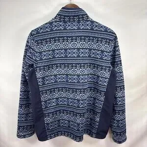 This XL 18 Kid’s Vineyard Vines Fair Isle Jacket is a stylish and comfortable addition to any boy’s winter wardrobe. The blue jacket features a classic Fair Isle pattern, long sleeves, a zip closure, and a collared neckline. Easy to care for with machine washable instructions, this pullover jacket is perfect for casual occasions during the fall and spring seasons. Made by the reputable brand Vineyard Vines, this jacket offers a regular fit and is sure to keep your little one warm and looking great.