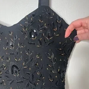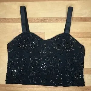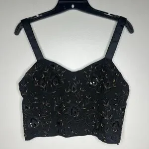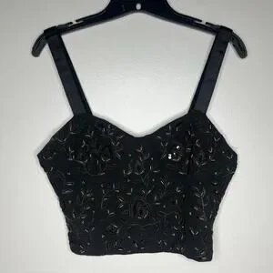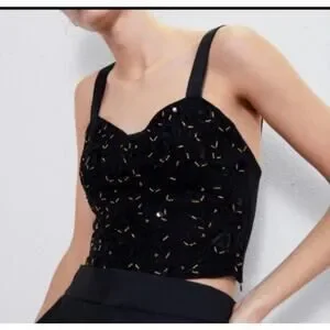 Zara Beaded Bustier Style Top Cropped Size Large Black Gold Sleeveless Festival