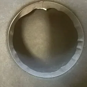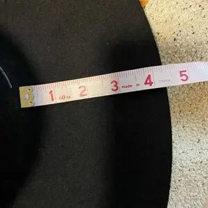 Elevate your style with this elegant black wide-brim hat. Perfect for any occasion, it adds a touch of sophistication to your outfit. Measures 16.5” wide and fits a head circumference of 22”. I thrifted it but never wore it. It is made out of felt, it has a round crown, the tag was cut off and it looks like the band was adorned with something (ie-ribbon) but it was also removed. Can be used for a good diy project. :)