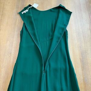 Elegant green maxi dress. Sleeveless design. High slit detail. Perfect for any occasion.