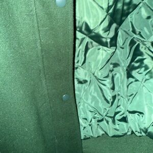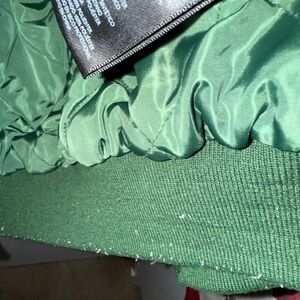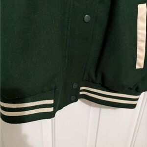 Step up your fashion game with this stylish varsity jacket in green and cream.