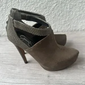 Jessica Simpson JS-Fionna Grey Leather Cutout Booties Heels Size 6.5M