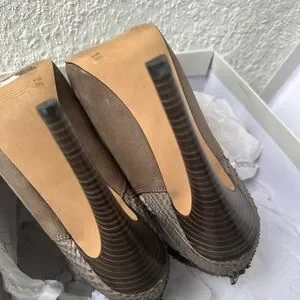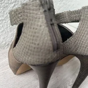 In excellent condition, worn only once. No scratches or scuffs — heels are flawless. Features genuine Colorado leather in grey, cutout design, pointed toe, and back zipper. Heel height approx. 4.5 inches. Size 6.5M.