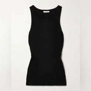 THE ROW Misty ribbed cotton-jersey tank black size XL