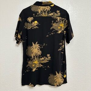 Billabong Mens Tropical Black Button Down Shirt. Stylish button-down with tropical palm design. Ideal for casual wear. The shirt has lint, i cannot remove it all, other than that it is EUC. Material tag not available.