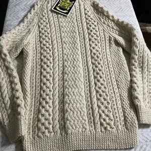 Una O'Reilly Aran Sweater Size XL Cream Wool Ireland Chunky Knit Pullover