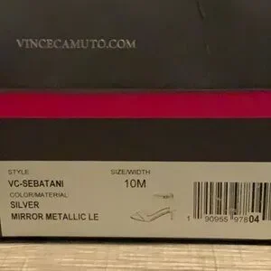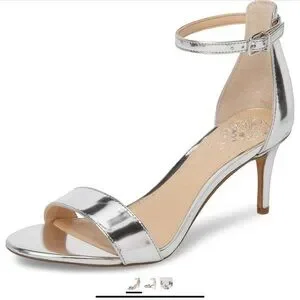 NIB VINCE CAMUTO SEBATANI SILVER METALLIC HEEL ANKLE STRAP DRESS HEEL SANDALS