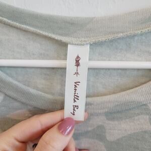 Get ready to cozy up in this super soft Vanilla Bay camo print pullover sweatshirt! This NWOT (New Without Tags) sweatshirt is perfect for adding a touch of style and comfort to your casual wardrobe. The camo print is both trendy and versatile, making it easy to pair with your favorite jeans or leggings. Missing size tags. Looks like a Medium.