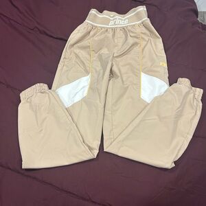 Leek and sporty track pants from Prince x Melissa Wood Health with a retro-inspired look. Crafted in lightweight, two-tone nylon and featuring a high-rise fit and logo elastic