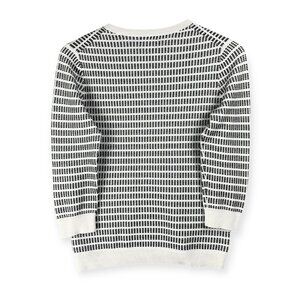 Chic and preppy J.Crew Factory dot dash sweater in a crisp white with black woven detail. Crafted from breathable cotton with a fitted silhouette and timeless crew neckline, perfect for layering with collared shirts or pairing with denim for an old money, vintage casual, or academia-inspired vibe. Features 3/4 sleeves and soft stretch knit for comfortable everyday wear. Great preloved condition with no visible flaws.