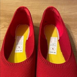 Elevate your style with these elegant red women's flats. Removable soles, washable shoe. Worn once, like new.