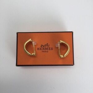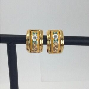 Hermes vintage cloisonne' luxury enamel gold tone floral clip on earrings in original box