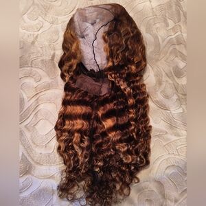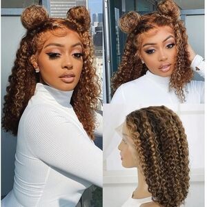 18" Highlight 100% Human Hair HD Lace Wig Deep Wave Curly Honey Blonde & Brown