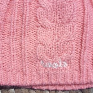 Pink knit hat with Roots embroidery
