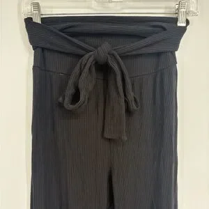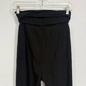 Reformation Kassia Black Tie Waist Ribbed Pants
