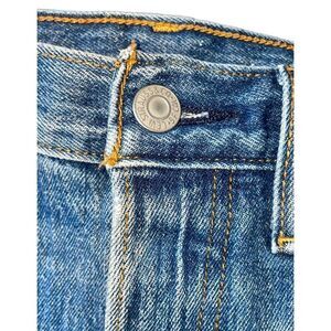 Classic Levi's jean shorts. Distressed details. Rolled hem. 501 style