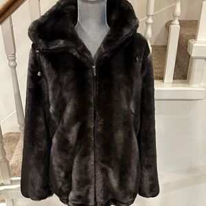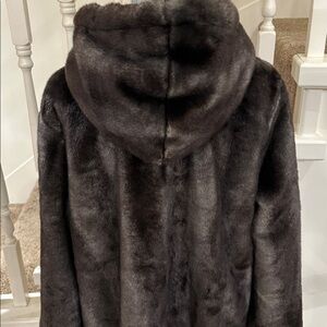 Nwot. Rich faux fur. Two front pockets. Waist can be tightened with retractable string. Thick and warm. Greys and off white with black colors.