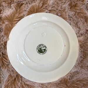 Decorative plate featuring a fishing scene. Elegant design with green and yellow accents.