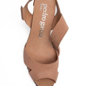 Pedro Garcia Women Sandals EU 38 US 8 Peach Suede Leather Heel Cork Insole Spain