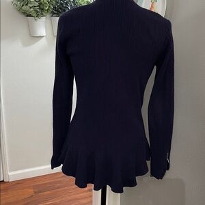 Venus Full Zip Ribbed Cardigan Sweater HiLo Navy Blue Long Slvs EUC