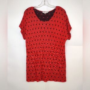 Brenda French Women's knit light weight material Red top with black pattern. 100% rayon
