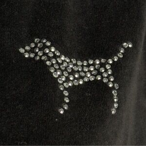 Victoria's Secret Black Velvet Hoodie Love Pink Embellishment Dog Motif