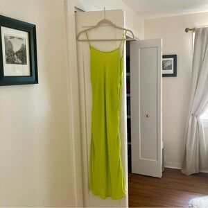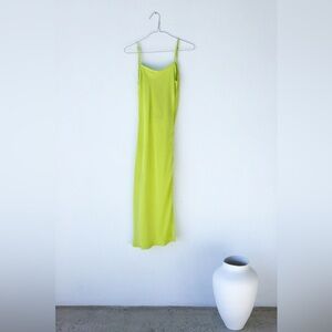Slip dress cut on the bias with cowl back line and adjustable straps in citron.