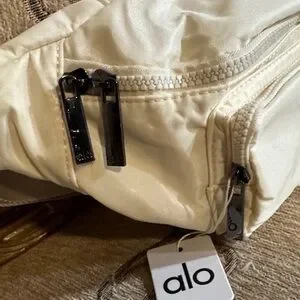 Stylish cream clutch by ALO Yoga. Features a front zip pocket and sleek design. Perfect for on-the-go.