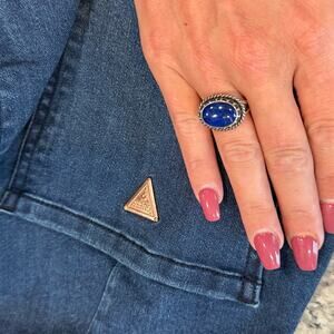 Vintage 925 Sterling Silver Ring Navajo Lapis Lazuli Grace & Gilo SZ. 6.25 RARE