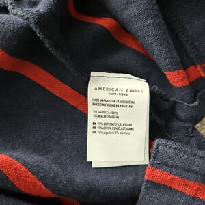 American Eagle Polo Shirt Men's XXL Classic Fit Blue & Red Striped Short Sleeve