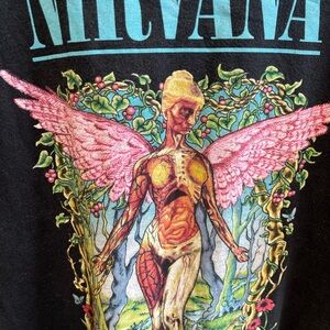Nirvana tee in faded black, Bold and stylish print some minor wear and fading shirt is older version