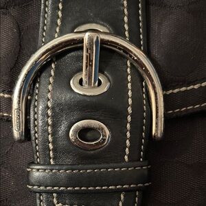 Chic black shoulder bag by Coach. Features elegant stitching and a sleek design. Ideal for versatile styling.
