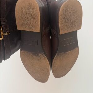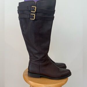Stylish brown leather knee-high boots with buckle detail. Perfect for any occasion. Wide calf! Worn once.