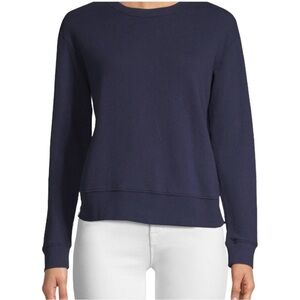 JOIE Devra Eyelet Ruffle Long Sleeve Sweatshirts in Navy/White Size Small