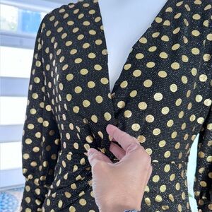 New 🖤💛 Elegant Black and Gold Polka Dot Long Sleeve Mini Dress