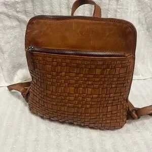 Elegant Tan Leather Woven Backpack