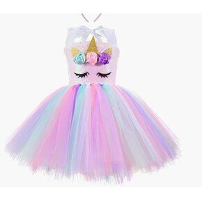 Unicorn Costume Sequin Rainbow Tulle Dress – Size 6T