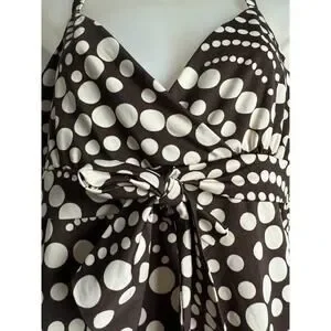 Y2K Babydoll Empire Waist Size L Festival Tank Top Brown Cream Polka Dot by INC
