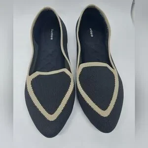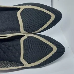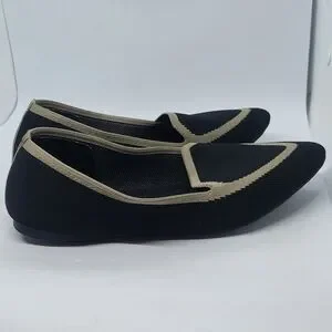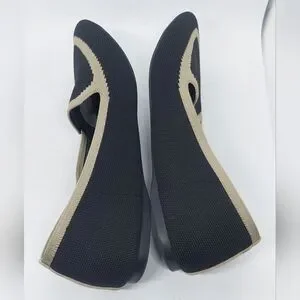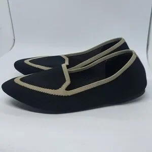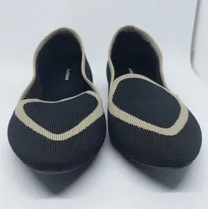 Birdies Blackbird Knit Flats Jet Black With Tan Trim Shoes Women's Size 9