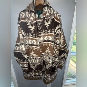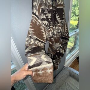 Ralph Lauren Southwestern Navajo 100% Wool Hand Knit Cardigan Waist Tie S/P Polo