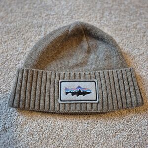 Patagonia Brodeo Beanie Fitz Roy Trout Patch Ash Tan Wool Blend Hat OS