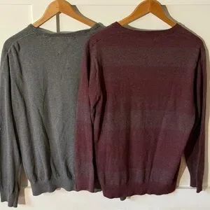 Two classic styles in gray and burgundy colors. Crew and V-neck. Claiborne is a soft cashmere. Hilfiger is a comfortable knit. Perfect for any occasion.
