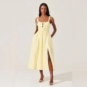 ASTR The Label Helia Bow Front Midi Dress in Lemon