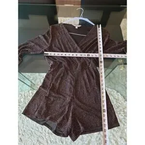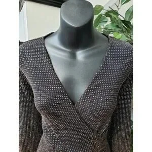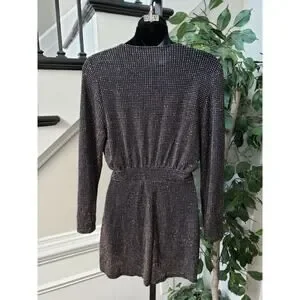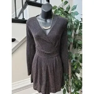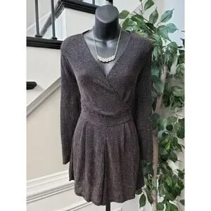 Dorothy Perkins Romper Womens Size 10 Black Glitter Long Sleeve Wrap V Neck