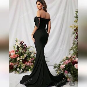 This stunning black gown boasts an off-the-shoulder neckline and cap sleeves, creating a sophisticated silhouette ideal for prom. The bodycon fit accentuates the figure, while the mermaid-style flare adds a touch of drama. Its luxurious fabric subtly shimmers, ensuring you stand out at any elegant event.