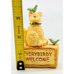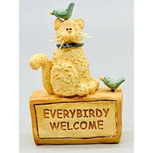 Blossom Bucket Suzi Everybirdy Welcome Cat Bluebirds Figurine 3.5 inch