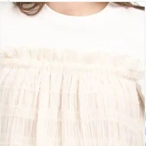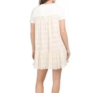 NWT ENGLISH FACTORY White/ivory Mini Ruched Chiffon T-shirt Dress Size S