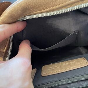 This mini-bag is perfect for a day at the parks! I have worn it a few times, but it is still in relatively great shape! The metallic “Danielle Nicole” on the back is somewhat worn-off as pictured. Would love this bag to go to a good home where it can be at the parks where it deserves to be! Shell is polyurethane, two interior pockets (one with a zipper) and adjustable straps.