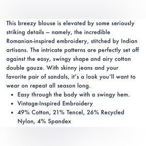 FAHERTY LIANA boho embroidered TOP M